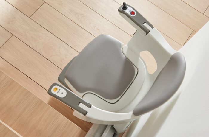 Siedzisko krzesełka schodowego HomeGlide wyposażone jest w podłokietniki oraz pas bezpieczeństwa. Mechanizm jezdny jest wyposażony w specjalny zestaw czujników zapewniających bezpieczeństwo w razie przeszkody na szynie jezdnej.