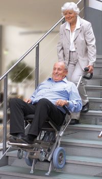 Schodołazy elektryczne gąsienicowe i kroczące krzesełkowe dla niepełnosprawnych i seniorów umożliwiają komfortowe i bezpieczne pokonanie schodów z użytkownikiem siedzącym na wózku inwalidzkim lub krzesełku. Schodołazy przeznaczone dla osób mieszkającym na wyższych kondygnacjach bloku w mieszkaniach i w domach jednorodzinnych.