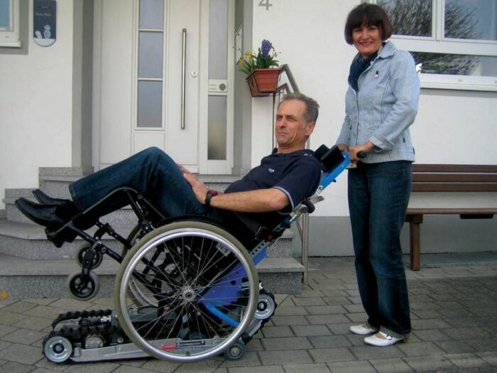 - Schodołaz gąsienicowy TK100 SA-S Treppenkuli – do transportu osób na wózka inwalidzkich po schodach, duży udżwig do 150 kg.